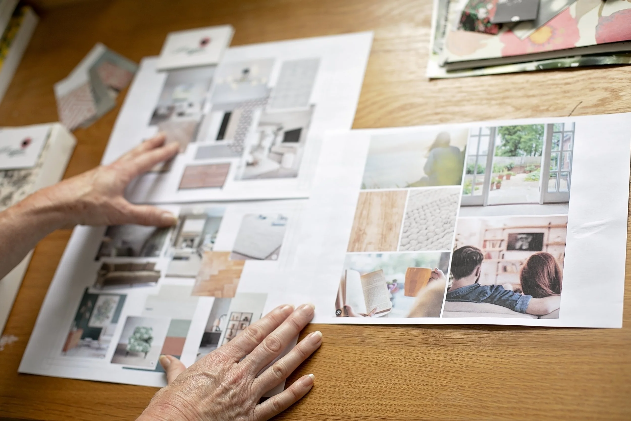 Design presentation of your bespoke room design, detailing the colour scheme, furnishing fabrics, layout, furniture, lighting and accessories on your own mood board.